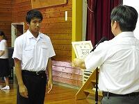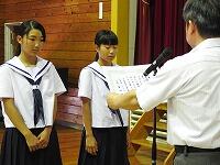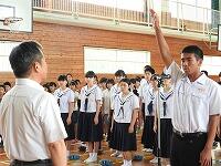 児童生徒会が中心になって、まずは、東郷小中学校のあいさつの約束事を1年生に伝えました。