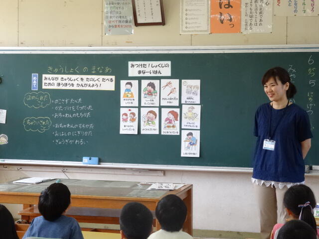 中央共同調理場から宮田さんをお迎えし、食に関する指導を実施しました。