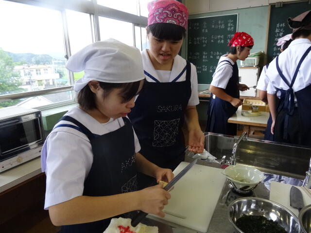 今日は、きゅうりの切り方テスト後に、切ったキュウリを使って酢の物を作りました。