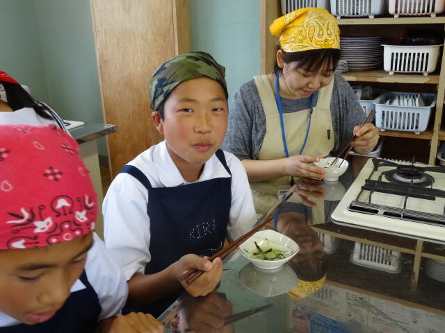 協力してできたこととおいしかったことが、8年生の成長ですよ。