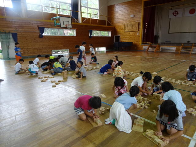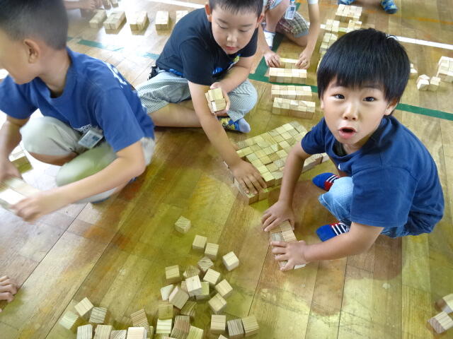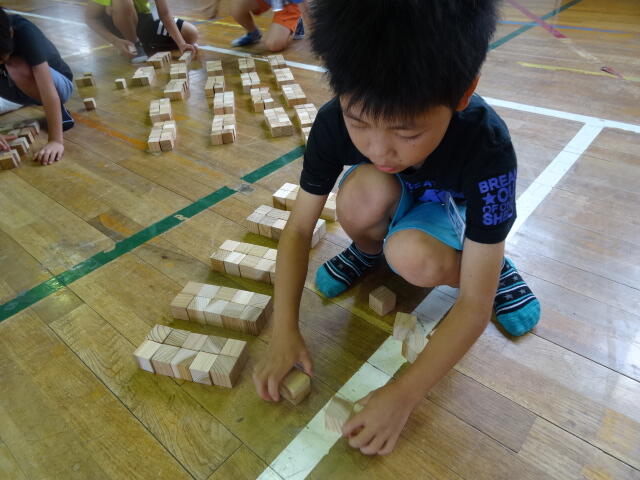 1年生から3年生は、飫肥杉で造られた積み木(日南キューブ)を活用して、様々な学習に対する理解を深めたり思考力を定着させたりしています。