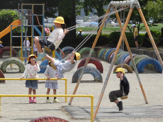 今日から1年生も5時間授業です。ブランコや鬼ごっこなどで昼休みを楽しく過ごしました。