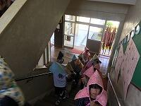 2年生が1年生の手を引き班別に学校内を隅々まで探検しました。