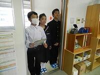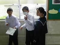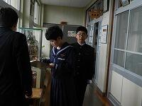 中学校の校舎を楽しそうに探検していました。