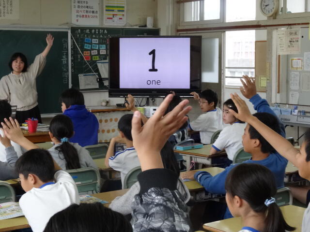 昨年度もしっかりと取り組んでいたので、英語を使ってあいさつしたり、1から100までを英語で言うことができたりと力がついています。