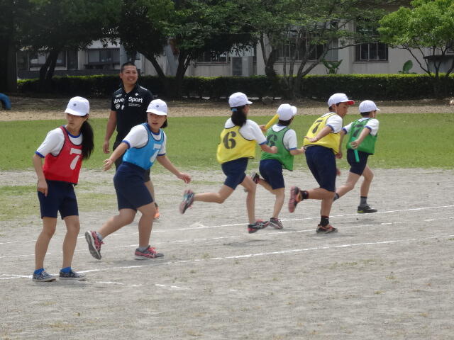 6年生は体育の時間に、リレーを勉強しています。
