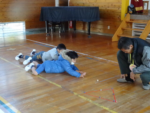 あやとり、おはじき、めんこ、ビー玉、お手玉、こま回し の先生です。