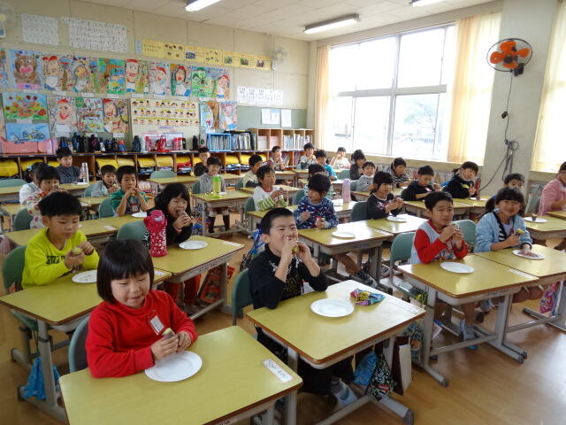 1,2年生が、生活科の時間においもパーティーを行いました。