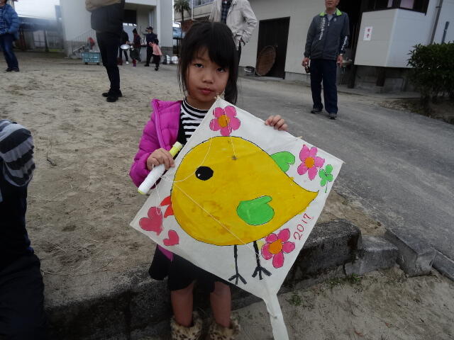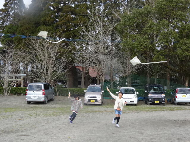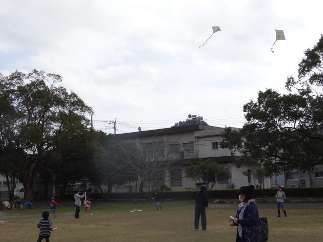 作った凧は、小学校の運動場であげました。