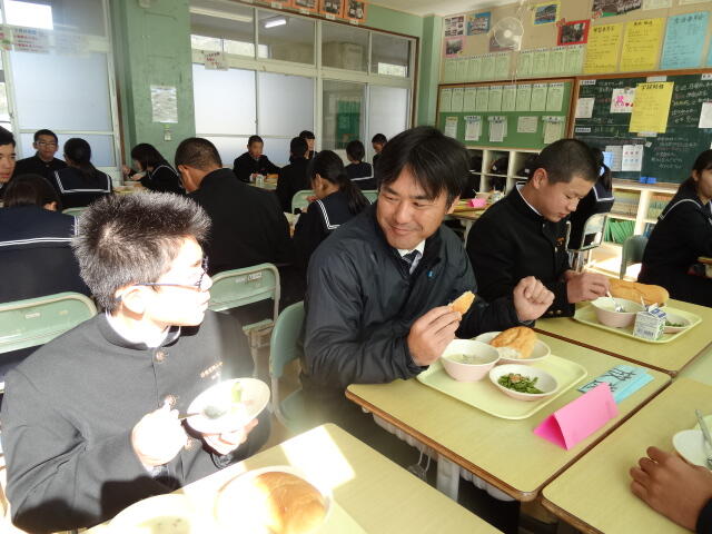 他学年の先生との交流給食を、中学校で行いました。