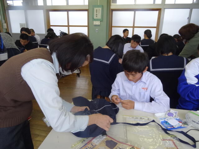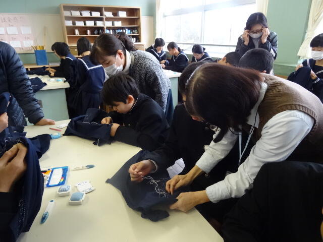 7年生は、家庭科の時間に「刺し子」の勉強をしています。