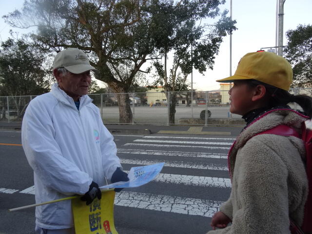 元気なあいさつで、冷たい空気も吹き飛ばしています。
