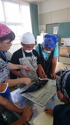 子ども達も協力しながら,なんとかカツオをさばくことができました。
