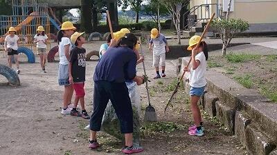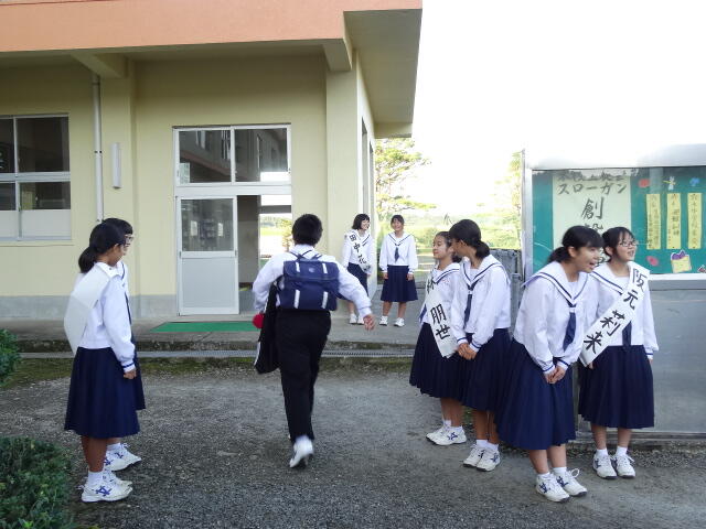 それらの後片付けを、朝早くに登校した児童生徒が自主的に行っていました。また、1時間目は急急遽、全校で後片付けを行いました。