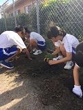 児童生徒や保護者、教職員で日南総合運動公園でつわぶき植栽に参加しました。