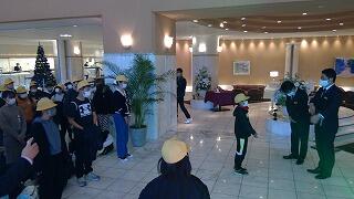 修学旅行2日目、天候も穏やかで、生徒たちも健やかな朝を迎えました。ホテルの朝食をとり、退館式で代表児童がホテルの方にお礼を述べたあと、いよいよ出発です。今日は、宮崎県庁、平和台、フェニックス自然動物園をめぐります。「世の中を学ぶ旅」の2日目、いよいよスタートです。