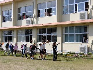 本日3月22日(金)に登校最終日を迎え、小学校生活のゴールとなりました。下校時に、在校生のお見送りがあり、「卒業おめでとう」「中学校でもがんばって」という声援を送っていました。