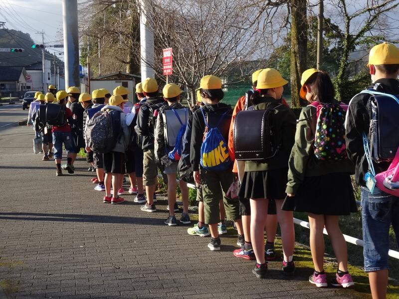 平山地区と風田地区の小学生はバスを利用して登下校しています。