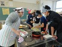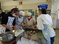児童は、慣れた手付きでピーラーを使ったり、中にはじゃがいもの芽を包丁でうまく取ったり、また、調理と片付けを並行して行ったりと、上手に作業を進めていました。