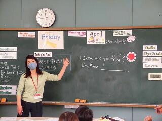「出身地がたずねられたり、答えられたりしよう」という「学習のゴール」をめざして、アクティビティ(活動的)に学習が行われていました。とても楽しそうな子ども達でした。