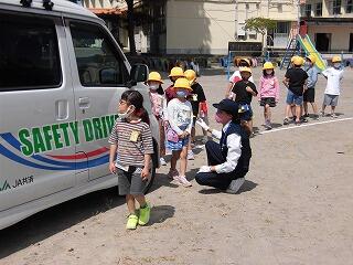 交通安全協会の指導員さんが、歩道の正しい歩き方を、紙芝居で分かりやすく説明してくださいました。