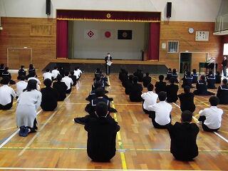 東郷小中学校は、明日から7連休のお休みになります。そこで、連休中のすごし方に関する指導が行われました。