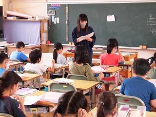小学校3~6年の外国語活動、外国語科の授業は、中学校の冨田先生が入って、TTの授業形態で学習しています。