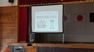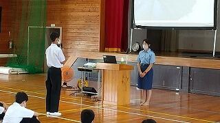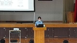 中学生全員が参加した薬物乱用防止教室が行われました。日南警察署より鈴木様を講師に迎え、講話していただきました。