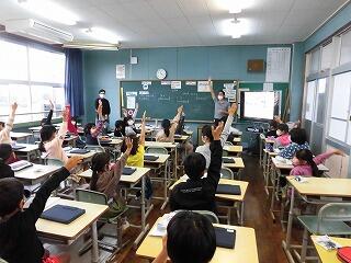児童は、最後の授業もとても楽しそうに学んでいました。ブライアント先生のおかげで、英語を学ぶ楽しさを体験することができました。ブライアント先生、2年間、ありがとうございました。