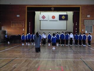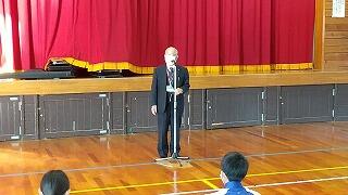 校長先生からの激励の言葉 柔道競技の岩満琥太郎君