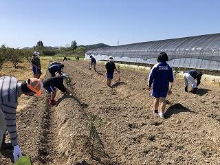 東郷中学校のキンカン園の木が古くなってきたため、新しい木を植えることになりました。地域の方に協力いただき、古い木を抜いたり、土を耕したりと多くの方が、携わってくれました。3月27日(土)にPTAと生徒数名が参加し植樹を行いました。今回は35本の木を植えました。今年の冬には実をつけてくれるそうです。これから大きく成長していくのが楽しみです。