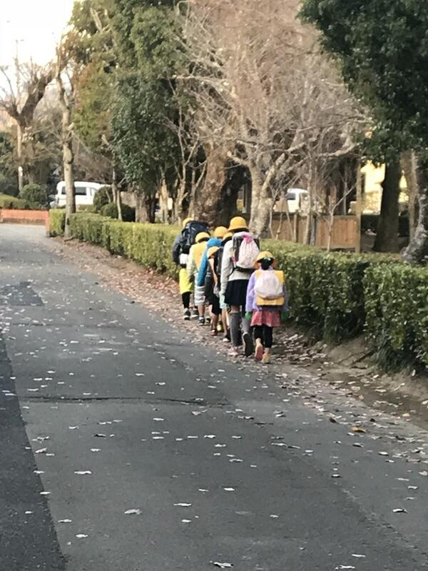 子どもたちは寒さに負けず、背筋をまっすぐに伸ばしてしっかりと自力登校を頑張っています。