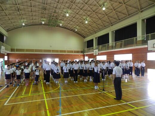6月6・7日に行われる地区中総体の推戴式が中学部体育館で行われました。小学6年生も参加しました。今まで練習してきた成果を存分に発揮し、各部ともいい報告ができるといいですね。