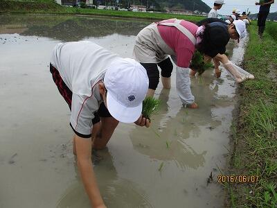 6月6日 前日まで雨でしたが、天候に恵まれ田植えを行うことができました。
