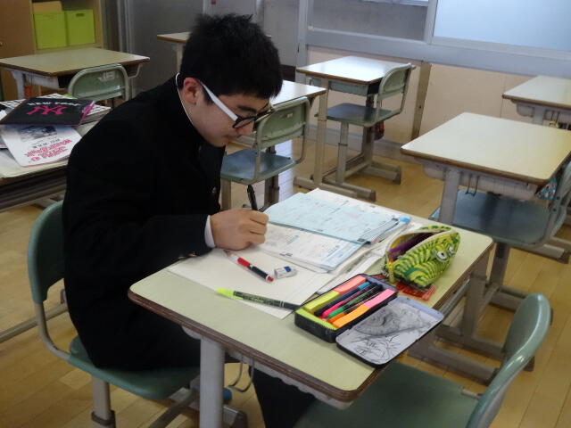 今日は、早く登校した生徒は学年末テストのための勉強をしていました。