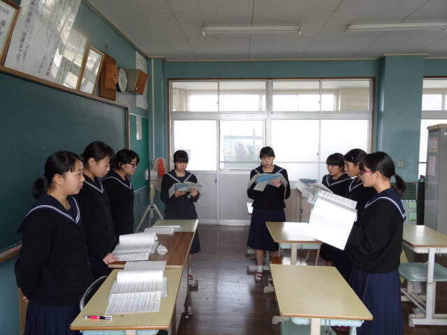 今日は、6年生は昼休みに、9年生は放課後に式中に歌う歌の練習を行っていました。