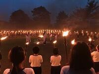 最後は、友情の火を灯し、それぞれの思いを乗せて火を送りました。