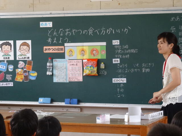 めあては、「どんなおやつの食べ方がいいか考えよう」でした。しっかりと考えて、いろんな意見を出すことができました。