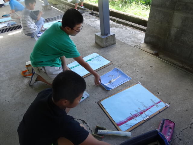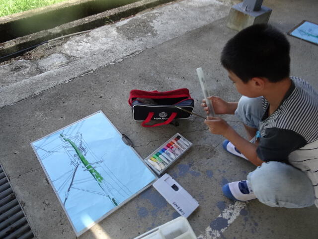 5年生は図工の時間「電柱のある風景」をテーマに、スケッチをしています。