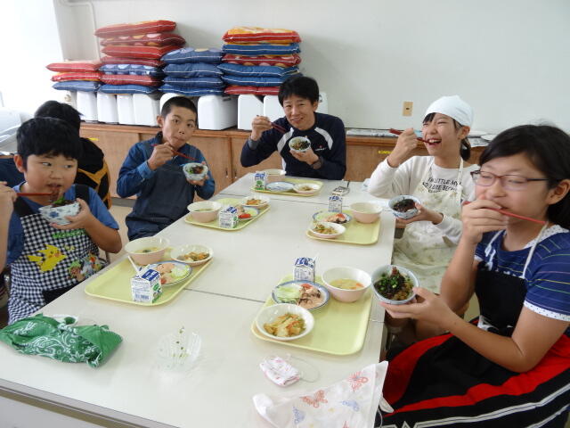 日南漁港婦人部の皆様を講師に迎え、鰹料理を学習しました。