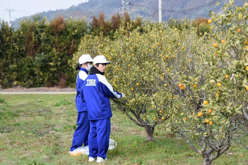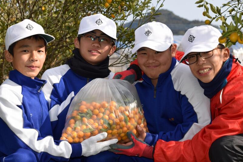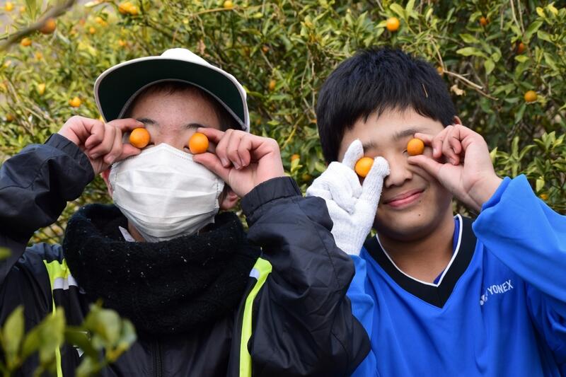 学校園のキンカンが、今年も豊作でした。7年生が頑張って収穫しました。