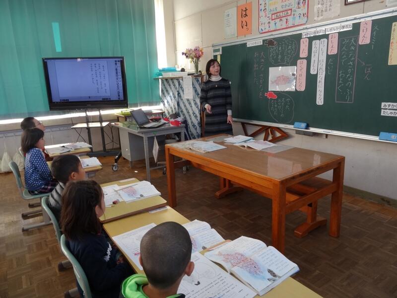 1年1組の国語の授業を、小中学校の職員で参観しました。