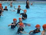 中学校・小学校、それぞれの団長・副団長によるフリースロー対決で団色を決定しました。