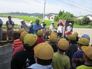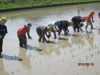 5年生が6月13日に田植えをしました。田んぼに足をいれた瞬間「うわぁー」と言う歓声を上げた子ども達でしたが、何とかもち米の苗を植え終わりました。