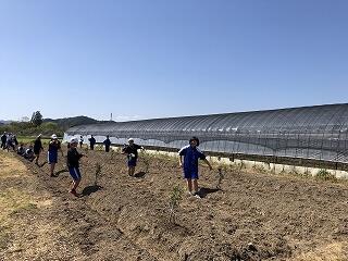 東郷中学校のキンカン園の木が古くなってきたため、新しい木を植えることになりました。地域の方に協力いただき、古い木を抜いたり、土を耕したりと多くの方が、携わってくれました。3月27日(土)にPTAと生徒数名が参加し植樹を行いました。今回は35本の木を植えました。今年の冬には実をつけてくれるそうです。これから大きく成長していくのが楽しみです。