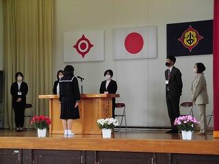 新入生誓いの言葉で代表の7年生は、「自ら気付き、考え、実行し、メリハリを付けて一つ一つしっかり取り組んでいきたい」と述べました。
