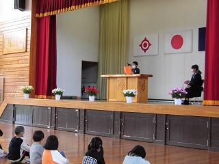 校長先生は祝辞の中で、1年生に「大きな声で元気なあいさつ、ありがとう、ごめんなさいが言える正直で優しい子」「毎日しっかり勉強して賢い子」「交通安全に注意して、元気に登校し、たくさん運動してたくましい体をつくる子」になってほしいと話されました。