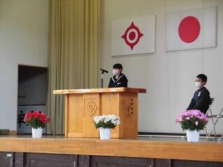 7年生は、「4つのキーワード、自立・共生・感謝・貢献を意識して、実りの多い学校生活を送り」「今日を一生懸命に生き、喜びと感動を分かち合い、明日に向かって前進していきましょう」と話されました。