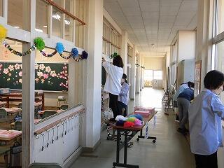 入学して来る新入生のために、立派な式場にしようと、みんな、一生懸命に取り組みました。