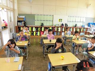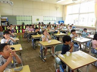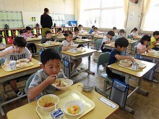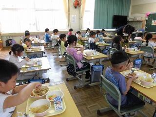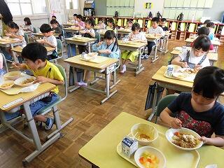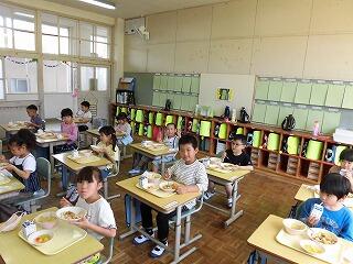 給食の準備、後片付けは、6年生の当番の仕事です。6年生は、1年生のために一生懸命に働いていました。6年生のみなさん、ありがとうございます。